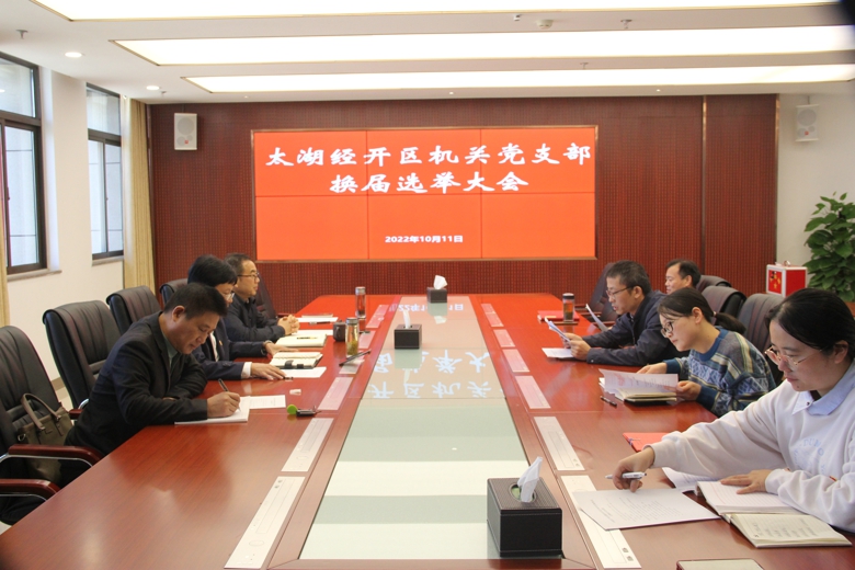 10月11日中午,太湖经开区机关支部委员会召开换届选举大会,会议严格按照《中国共产党章程》《中国共产党基层组织选举工作条例》及上级党组织有关规定,圆满完成各项议程,选举产生新一届机关支部委员会。王智平参加选举,充分肯定了上一届支委会工作,对当选的新一届支委会班子表示祝贺。
