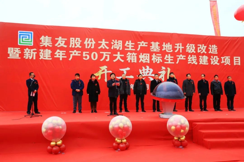 朱小兵宣布安徽集友新材料股份有限公司年产50万大箱烟标生产线建设项目正式开工。