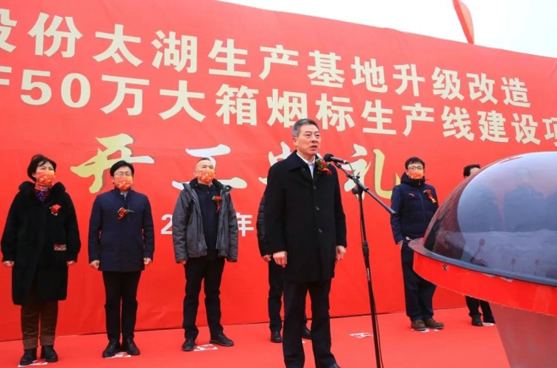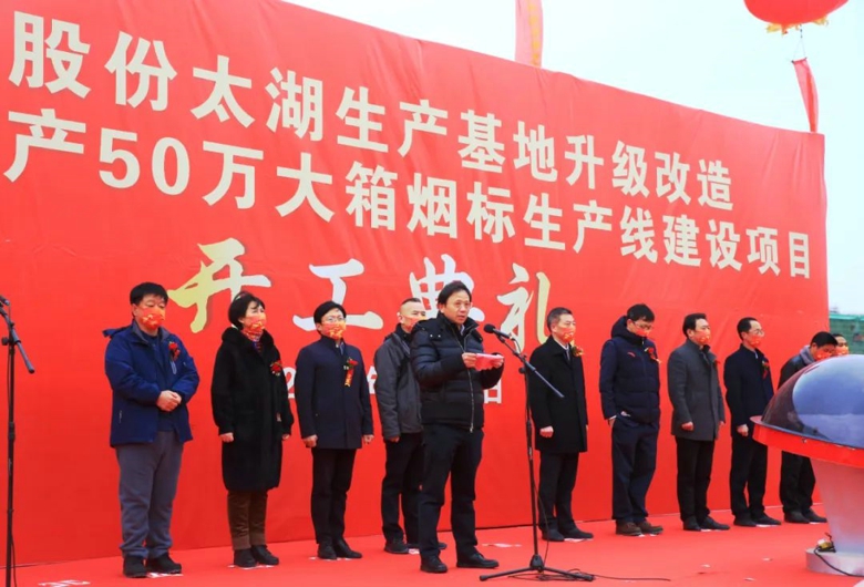 徐善水在致辞时介绍了项目情况。该项目预算总投资3.6亿元,年产50万大箱烟标,预计2023年底竣工投产。项目达产后,可新增就业岗位110个,新增就业人数450人,太湖基地年产值超10亿元,年上缴税收超亿元。
