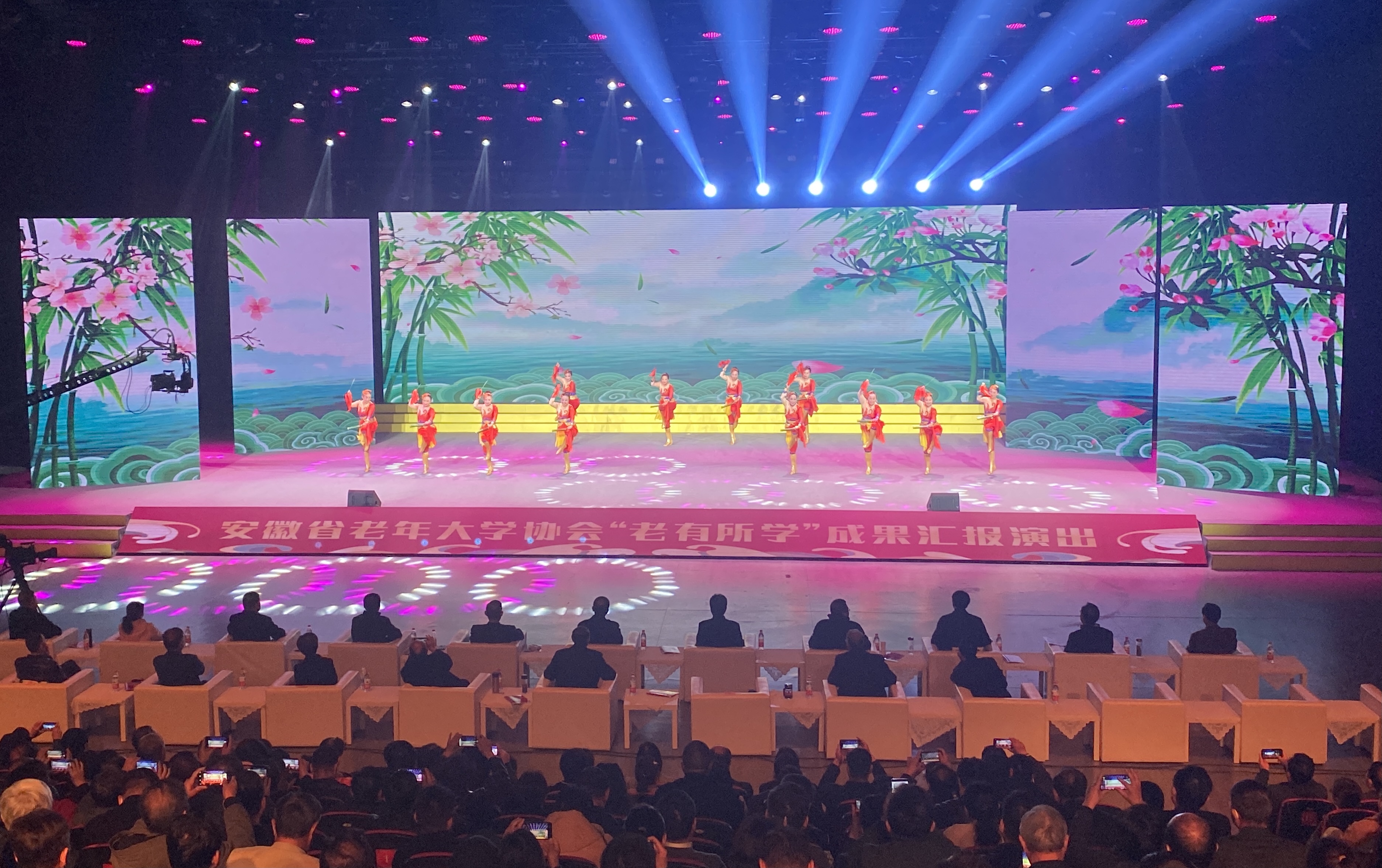 3月16日下午,安徽省老年大学协会、安徽广播电视台农业农村全媒体运营中心主办的“老有所学”成果汇报演出在安徽广播电视台演播大厅举行。我县《喜庆花梆》节目参演,市老年大学常务副校长苏斌,副校长李大进,县老年大学校长聂万健等观看节目,并与演职人员合影。