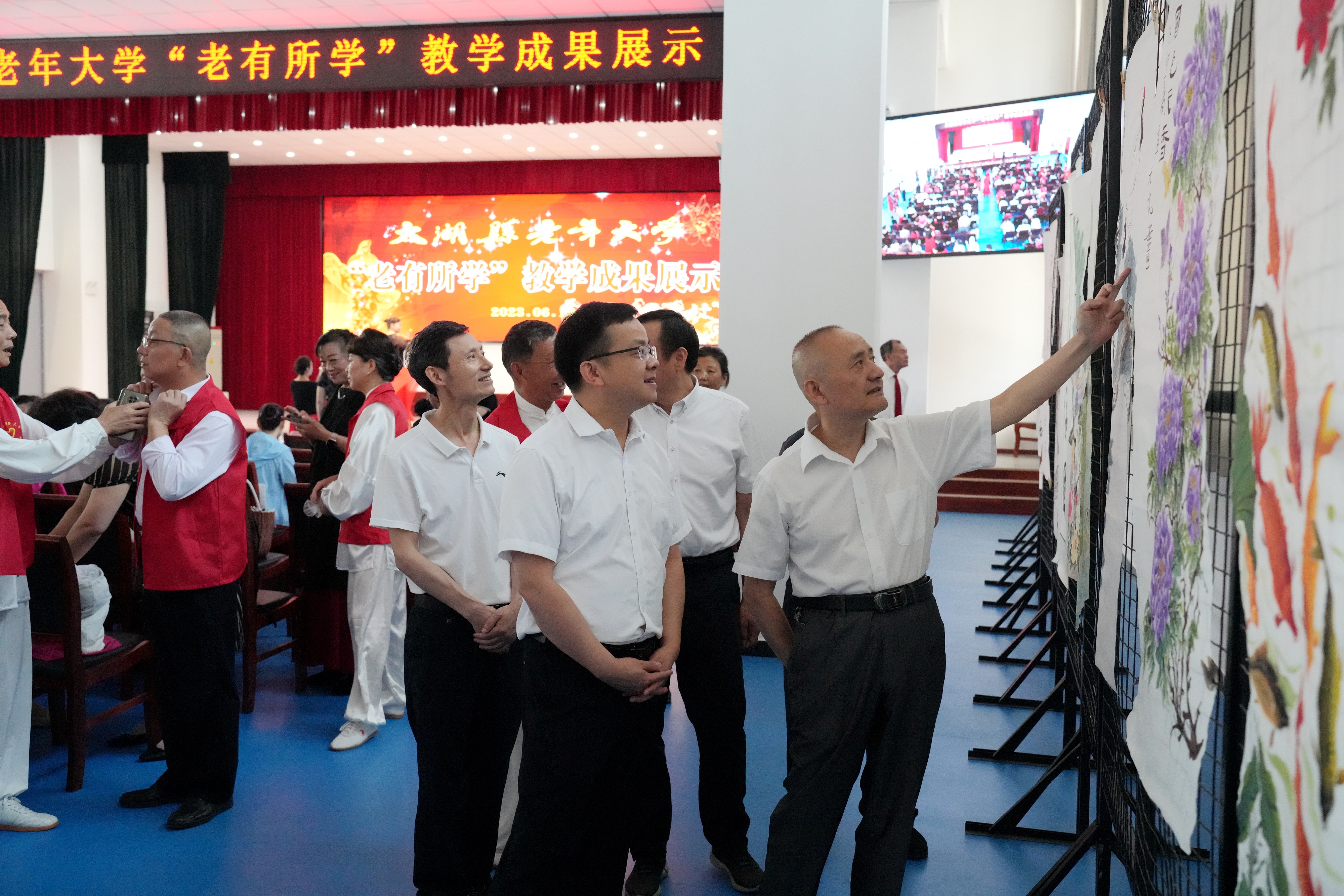 6月12日上午,县老年大学举行“老有所学”教学成果展示活动。县委常委、组织部长左小斌,县老年大学校长聂万健,县委组织部、县教育局、县老年大学等有关负责同志参加活动。