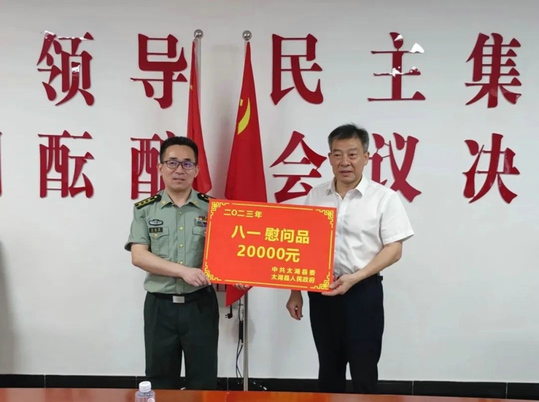 在“八一”建军节即将来临之际,7月31日上午,县委书记朱小兵率县四大班子领导先后来到武警太湖中队、县消防救援大队和县人武部,看望慰问驻地官兵和消防救援队员,为他们送上节日的祝福,感谢他们为太湖经济社会发展所作的贡献。县长吴海宏,县人大常委会主任李加生,县政协主席殷跃平,县领导杜林、沈红明、李传萍参加慰问。
