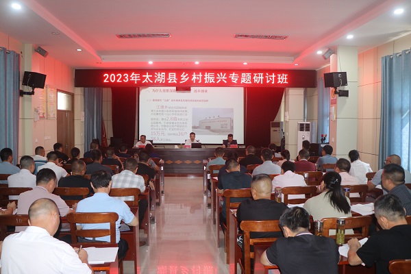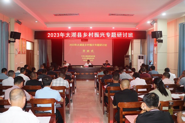 9月18日,县委书记朱小兵出席2023年太湖县乡村振兴专题研讨班开班仪式,并为学员上党课。县委常委、组织部长左小斌出席开班仪式。