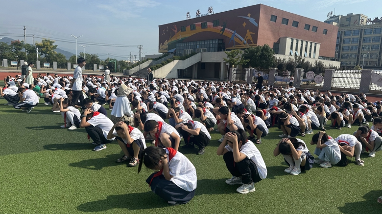 随后,在县新城小学开展了应急疏散演练活动?;疃?,全校2600余名师生抱头屈身有序撤离到指定安全区域。整场疏散演练严肃紧张、井然有序,师生反应及时、快捷高效,达到了预期效果。