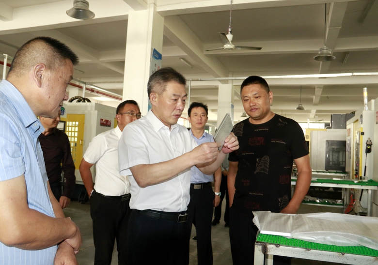 安徽今特食品有限公司是一家以调味品研发、生产、销售为一体的标准化生产服务企业,可带动周边50人就业;安徽鑫锐科技有限公司是专业从事铝合金、锌合金、钢件精密加工的企业,主要服务于智能电子产品领域、汽车零部件制造领域和健康保健器械领域。两家企业均是徐桥镇的“太商”返乡创业项目。朱小兵先后来到两家企业,进车间,看产品,问经营,谈规划。他鼓励企业要坚定信心,明晰思路,利用在外积累的丰富阅历、广泛人脉、技能技术,加大研发力度,扩大产能效益,做大做强企业。他要求乡镇要提升服务意识,健全工作机制,及时帮助企业解决遇到的困难和问题,为返乡创业者提供良好的创业环境,让更多能人想回来、能回来、留得住、干得好。
