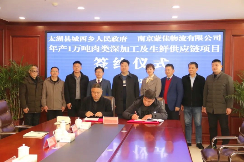 2月29日上午,年产1万吨肉类深加工及生鲜供应链项目顺利签约。县委常委、宣传部部长赵伟,县委常委、县经开区管委会主任王智平,南京蒙佳物流有限公司董事长欧阳帆,城西乡人民政府及县直有关部门负责同志参加签约仪式。这是龙年新春以来,我县首位返乡“太商”签下的亿元大单。