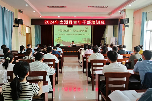5月15日上午,县委书记朱小兵为2024年太湖县青年干部培训班学员上专题党课。县委常委、组织部部长左小斌主持。