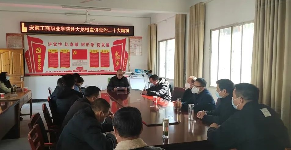 在大龙村,安徽工商职业学院纪委副书记、直属第一党支部书记耿艳军从党的二十大的主题、主要成果、过去5年的工作和新时代10年的伟大变革、全面建设社会主义现代化国家的目标任务、坚持党的全面领导和全面从严治党等方面进行了宣讲。整场报告深入浅出,内涵丰富,逻辑严谨,思想深刻,对与会全体党员同志准确把握、贯彻落实党的二十大精神具有重要指导意义。