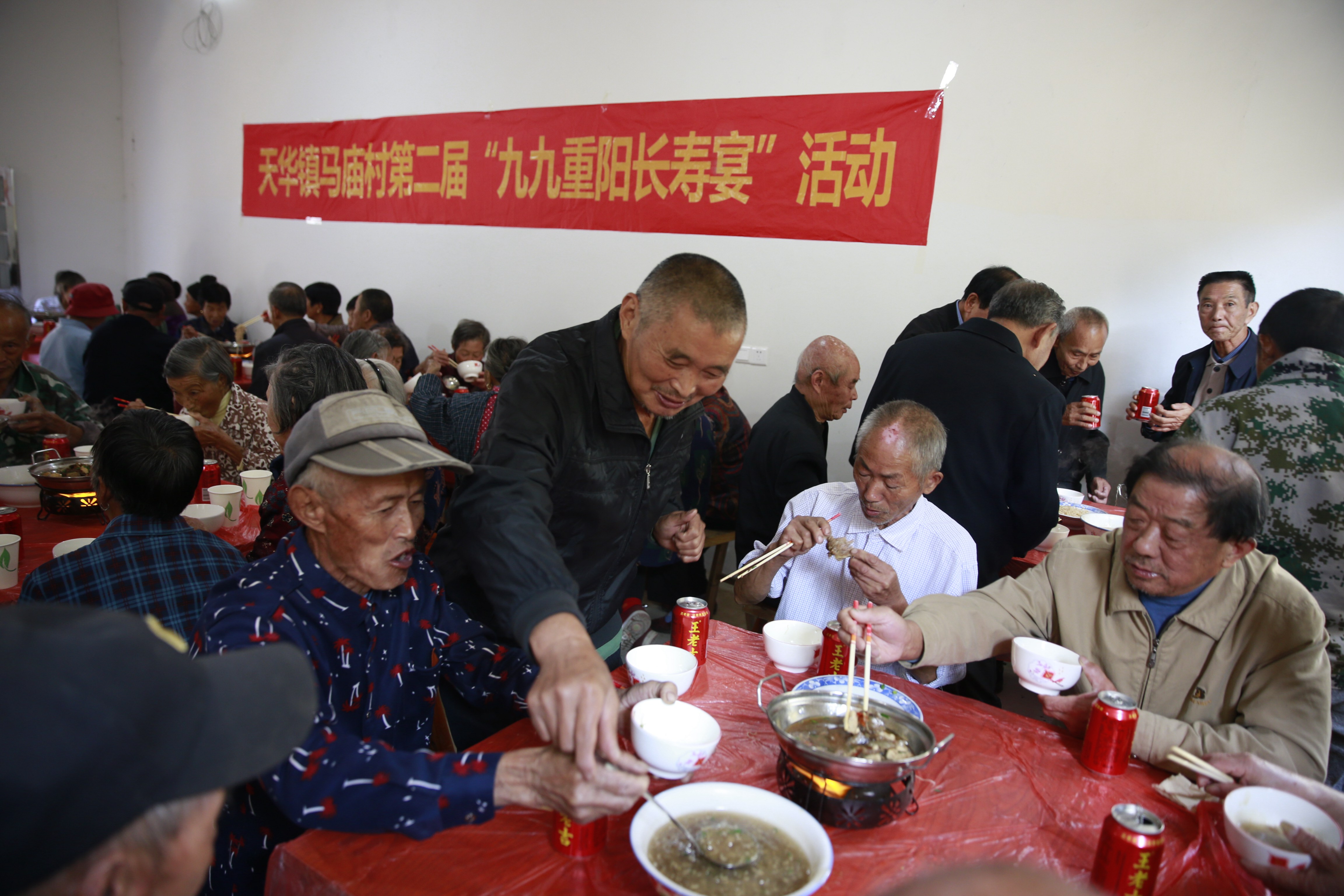 太湖县天华镇马庙村70周岁以上的老人在品尝 “长寿宴”