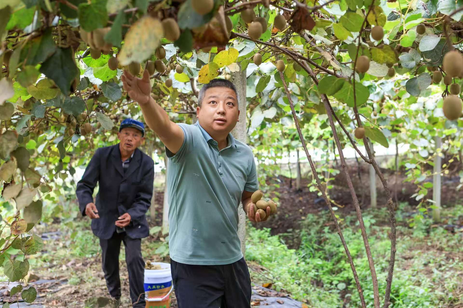 金果飘香季,喜获丰收时。秋高气爽,汤泉乡迎来了猕猴桃丰收季。党员志愿者帮助村民抢抓晴好天气采摘猕猴桃,田间一派忙碌景象。