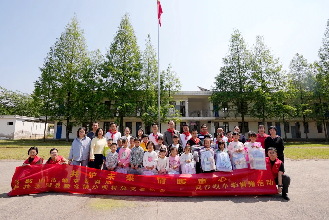夏日骄阳,爱心传递。5月12日,马鞍山市烟草专卖局(公司)副经理潘武兵带领财务、信息、安管三个党支部与沙坝村党总支在沙坝小学开展以“共护未来、情暖童心”为主题的捐赠活动。 捐赠仪式上,沙坝小学校长致欢迎词,随后,少先队员为来宾佩戴红领巾。此次马鞍山市烟草专卖局向全校学生捐赠书包、水杯等学习生活物品。 拳拳爱心点燃希望之光,片片真情托起明日朝阳。本次捐赠活动,让我们深深地感受到社会大家庭的温暖,为孩子们送来了爱心,让全体师生倍感温暖。
