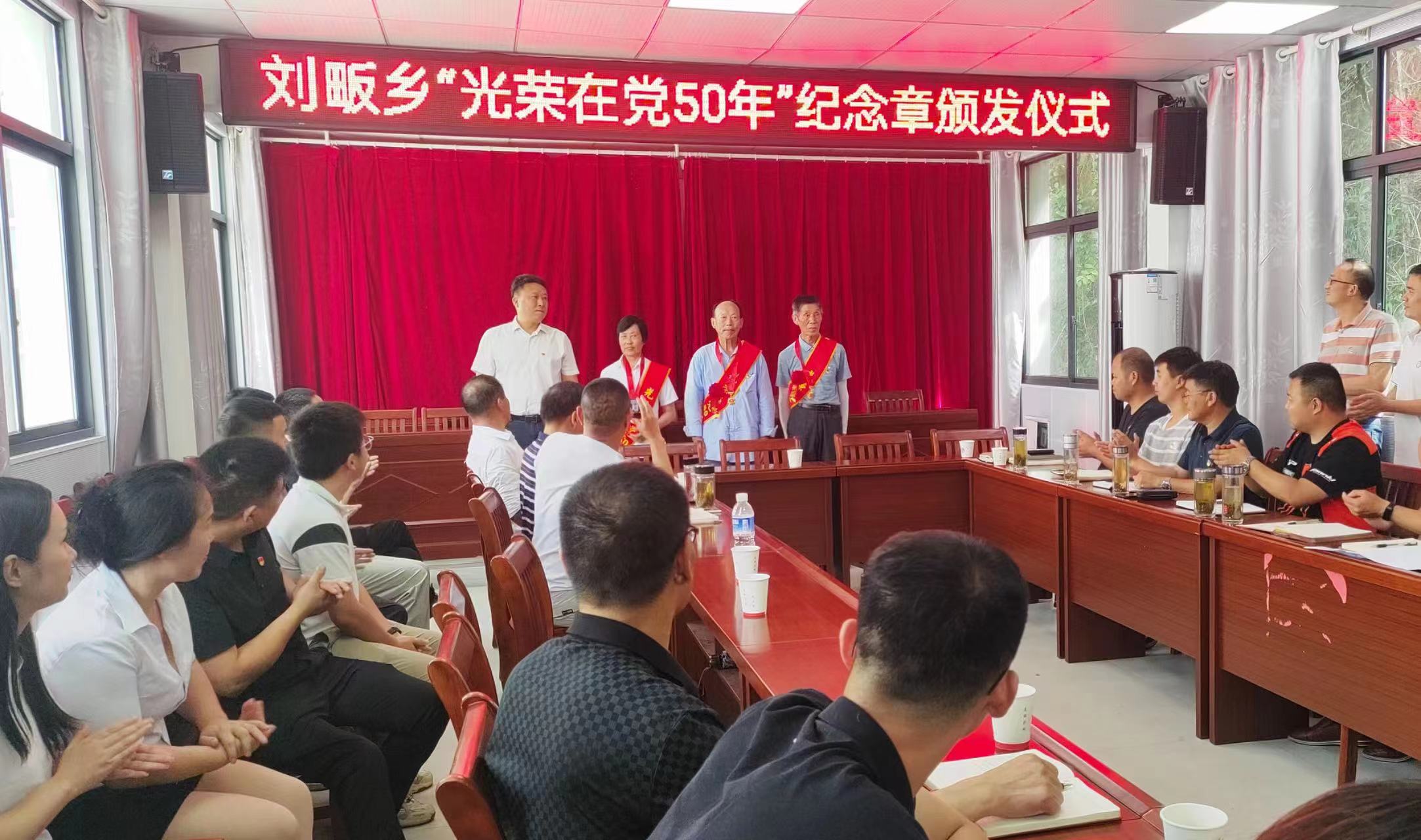 为庆祝中国共产党成立102周年,进一步激发党员爱国情怀,弘扬伟大建党精神,6月27日,刘畈乡举行“光荣在党50年”纪念章颁发仪式,乡领导班子成员、“光荣在党50年”老党员代表、各村党(总)支部书记、2022年新发展的党员、乡直各单位主要负责人、驻村工作队全体成员参加。