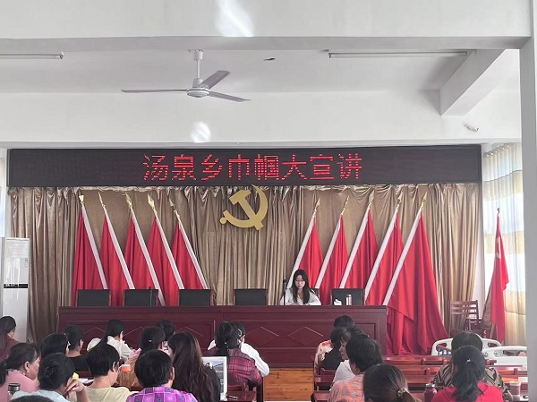 党建+引领,统一思想“聚合力”。汤泉乡妇联始终把做好妇女群众的“思想政治引领”摆在首位,紧密结合党员活动日、振兴夜校、新时代文明实践所(站)等系列活动,把思想政治引领贯穿于妇联工作各方面、全过程。加大典型引领和宣传力度,组建“亭亭姐姐”巾帼宣讲队,依托妇女之家、儿童之家等阵地,开展党的二十届三中全会精神、党的创新理论等宣讲活动15场,受益群众3600余人,持续推动党的主张和思想浸润妇女群众,不断提升妇女儿童工作影响力和感召力。