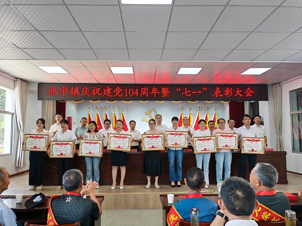 7月1日,北中镇举行庆祝中国共产党成立104周年暨“七一”表彰大会。全镇各党(总)支部书记、受表彰对象、镇直单位负责人及镇机关全体党员参会,共同为党庆生,凝聚奋进力量。