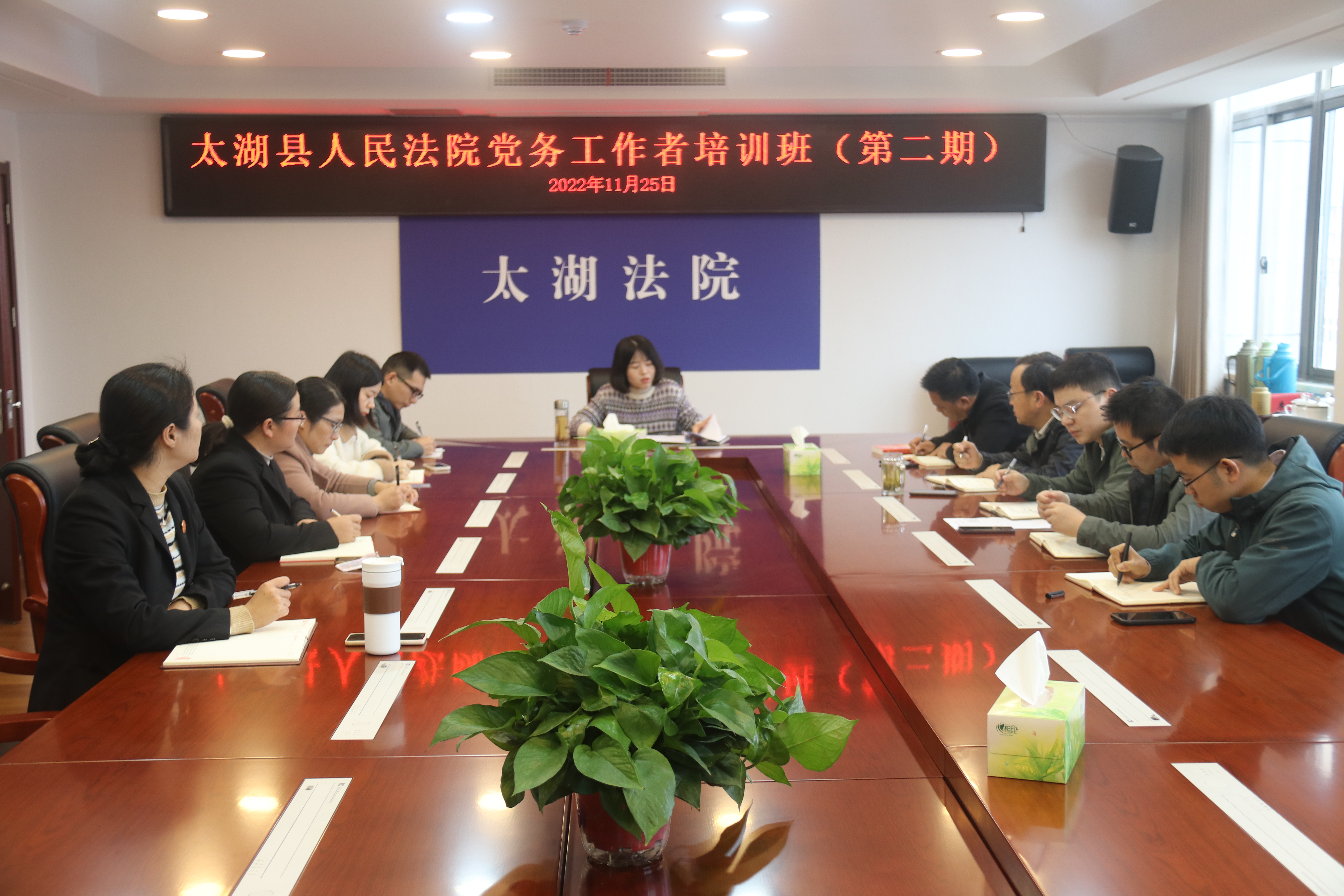 为持续提升党务工作者履职能力,推进机关党建工作标准化、规范化,11月25日下午,太湖法院举办2022年第二期党务工作者培训班。党组成员、政治部主任、党总支部书记主持会议,院党总支及各支部班子成员参加培训。