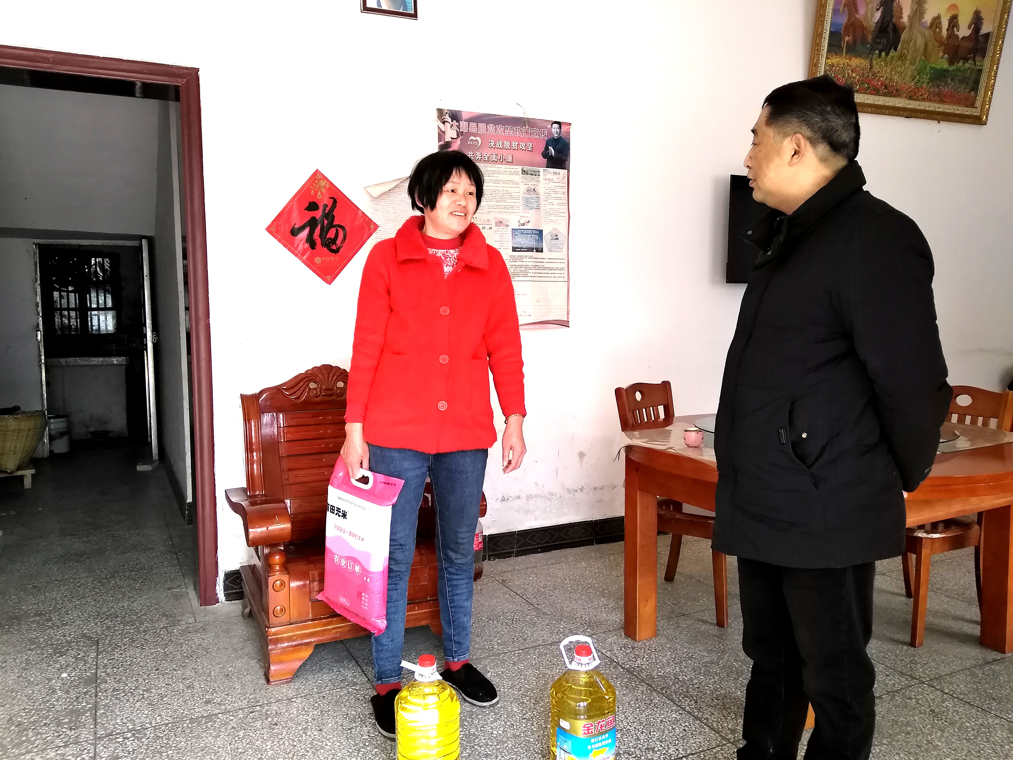 在走访慰问中,县直工委干部每到一户,都向群众开展党的二十大精神和乡村振兴政策宣传,详细了解帮扶村群众近期的家庭情况、生活状况、收入来源和实际困难等,并送上大米和食用油。