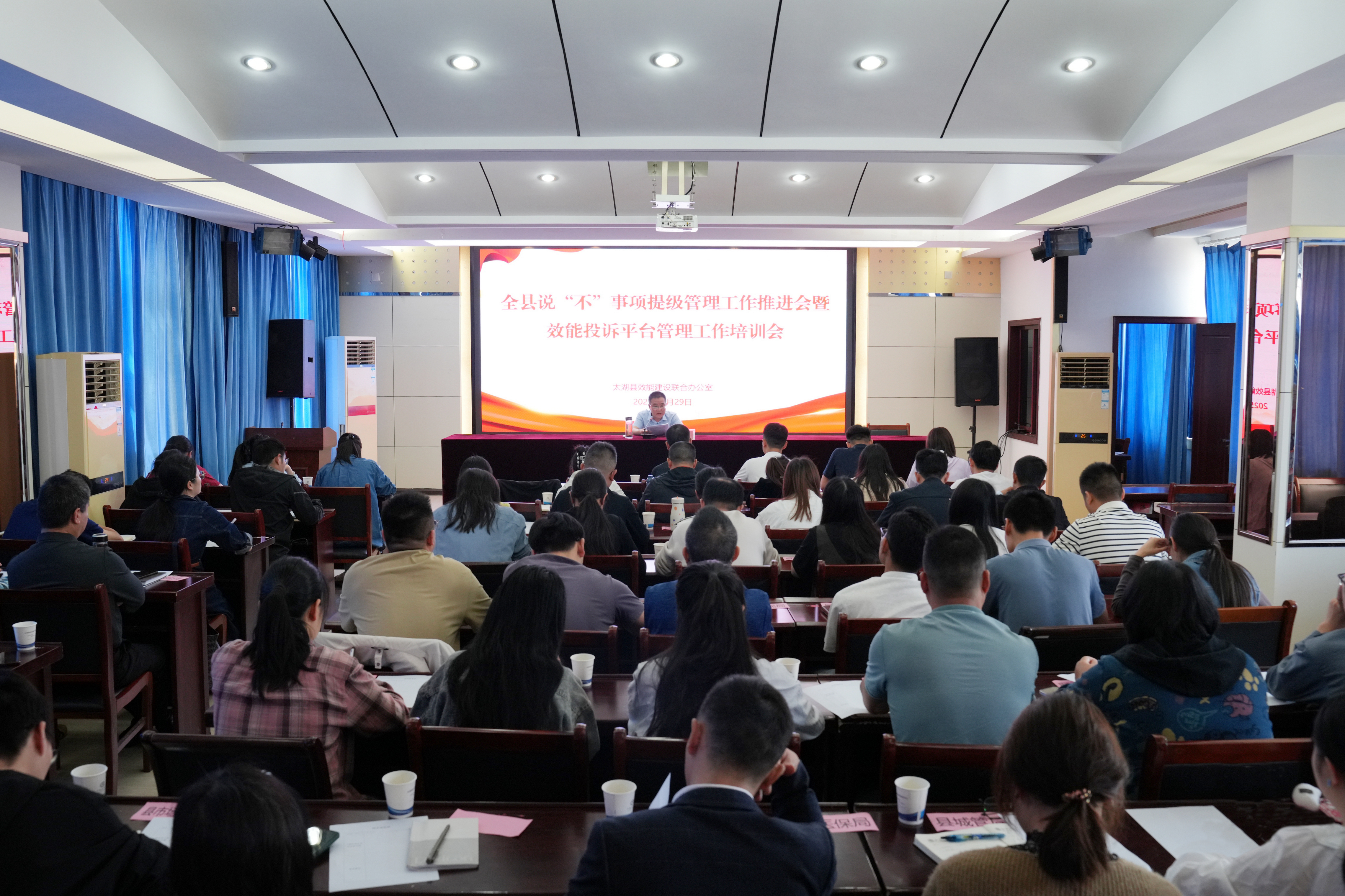 4月29日,我县召开全县说“不”事项提级管理工作推进会暨效能投诉平台管理工作培训会,县委组织部副部长、县直工委主要负责同志主持并讲话。