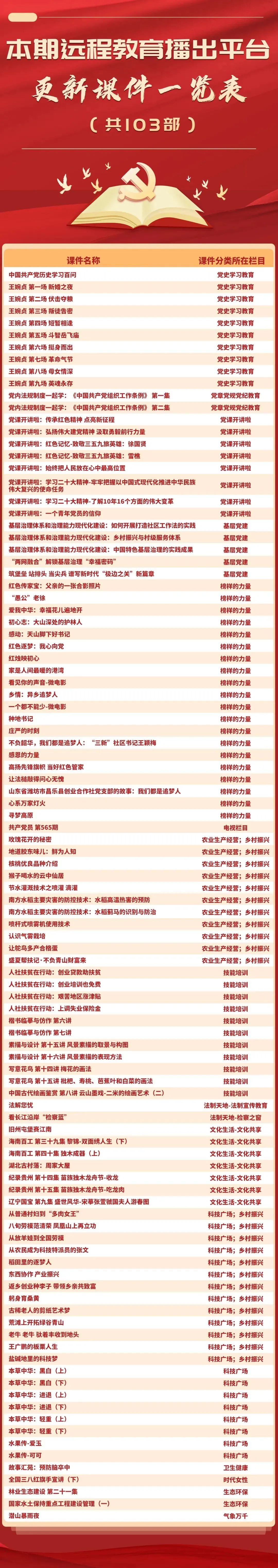 为进一步提升党员远程教育学用结合实效,帮助全省基层远程教育终端站点更便捷地掌握课件资源库内容,省党员电教中心通过安徽先锋微讯定期发布精品节目推荐以及最新上传更新节目单,请通过远程教育终端站点或安徽先锋网-先锋网视点播收看。