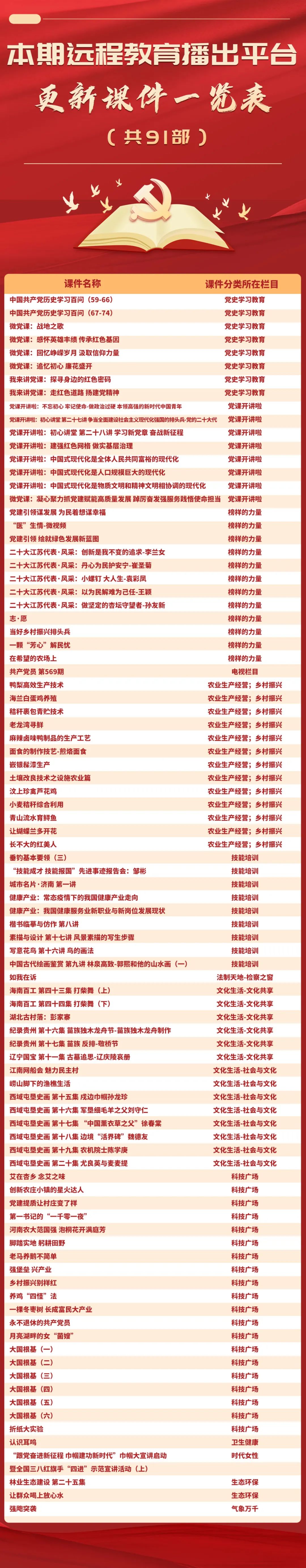 为进一步提升党员远程教育学用结合实效,帮助全省基层远程教育终端站点更便捷地掌握课件资源库内容,省党员电教中心通过安徽先锋微讯定期发布精品节目推荐以及最新上传更新节目单,请通过远程教育终端站点或安徽先锋网-先锋网视点播收看。