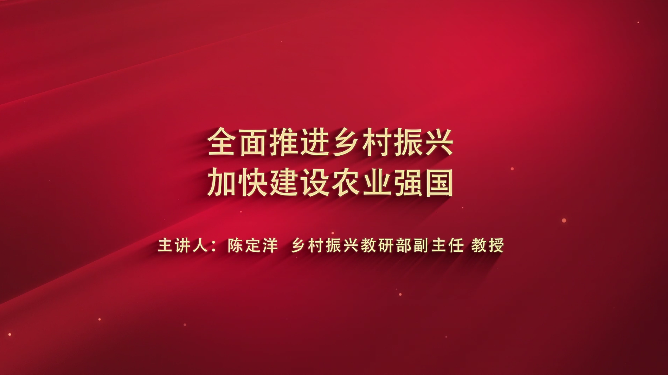 本片为学习宣传贯彻党的二十大精神“今天我来讲”活动的精品节目,由安徽省委党校(安徽行政学院)乡村振兴教研部副主任、教授陈定洋作为主讲人,以“全面推进乡村振兴、加快建设农业强国”为主题,对党的二十大精神进行了解读。