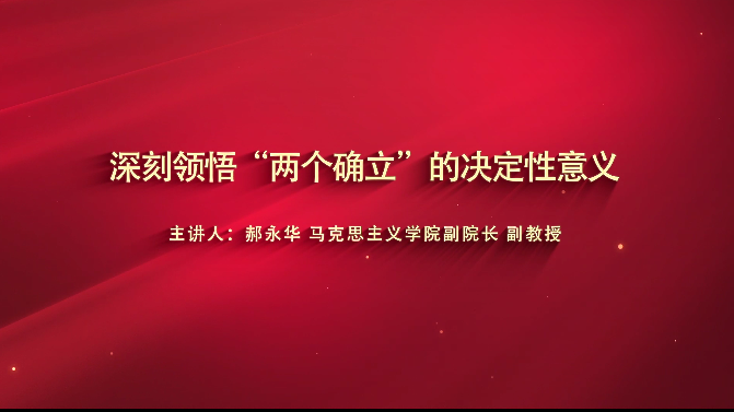 本片为学习宣传贯彻党的二十大精神“今天我来讲”活动的精品节目,由安徽省委党校(安徽行政学院)马克思主义学院副院长、副教授郝永华作为主讲人,以“深刻领悟‘两个确立’的决定性意义”为主题,对党的二十大精神进行了解读。