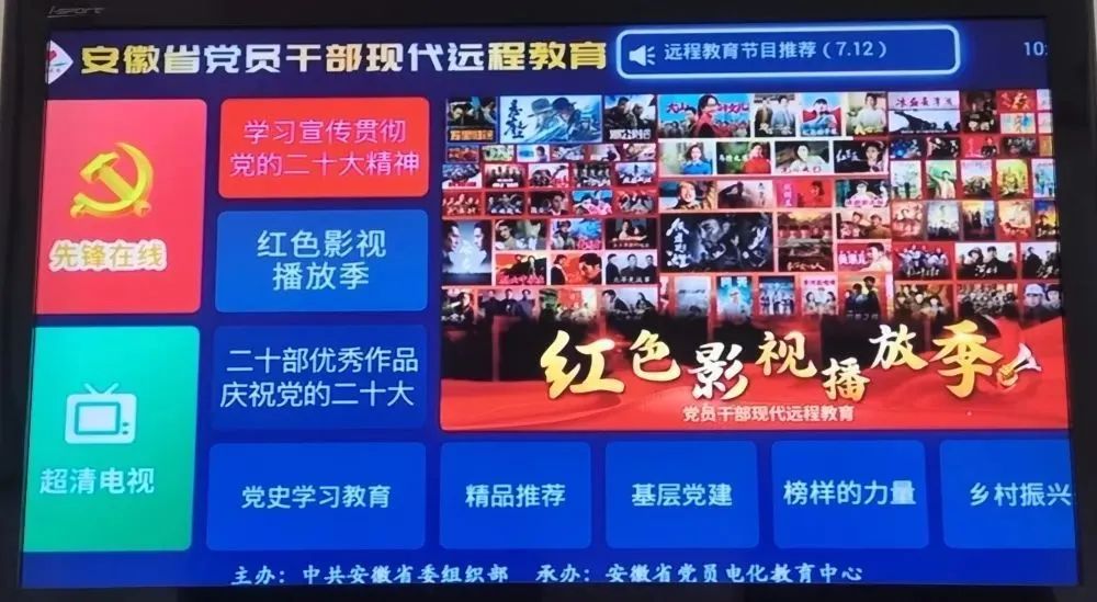 省党员电教中心在远教平台开设“红色影视播放季”和党员教育电视片展播专栏,筛选上传了一批优秀红色题材的电影、电视剧和纪录片,以及我省近年来制作的精品党员教育电视片。各地基层党组织通过基层远教终端站点,进入省远教平台“先锋在线”板块“红色影视播放季”专栏,点击课件播放收看。集中收看同时,全县党员干部群众可通过互联网电视远教平台“先锋在线”板块,自行收看“红色影视播放季”专栏节目。