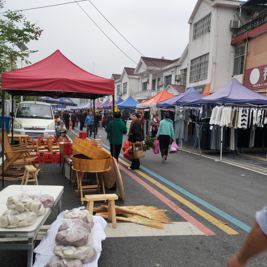 4月17日,北中镇集镇区“边贸赶集日”,地摊上摆放的各种农特产品、小百货和小吃琳琅满目,让人应接不暇。从四面八方来这里的商家、农家人山人海,成为山区边贸往来的一道靓丽风景。 近年来,北中镇以集镇区“边贸赶集日”为平台,坚持“三产活镇,边贸兴镇”,把地方人气集起来、把地方往来动起来、把地方经济活起来,切实打通皖鄂两省四县边贸交易“快车道”,助力乡村振兴“加速跑”,使“古镇北中”经济发展熠熠生辉。