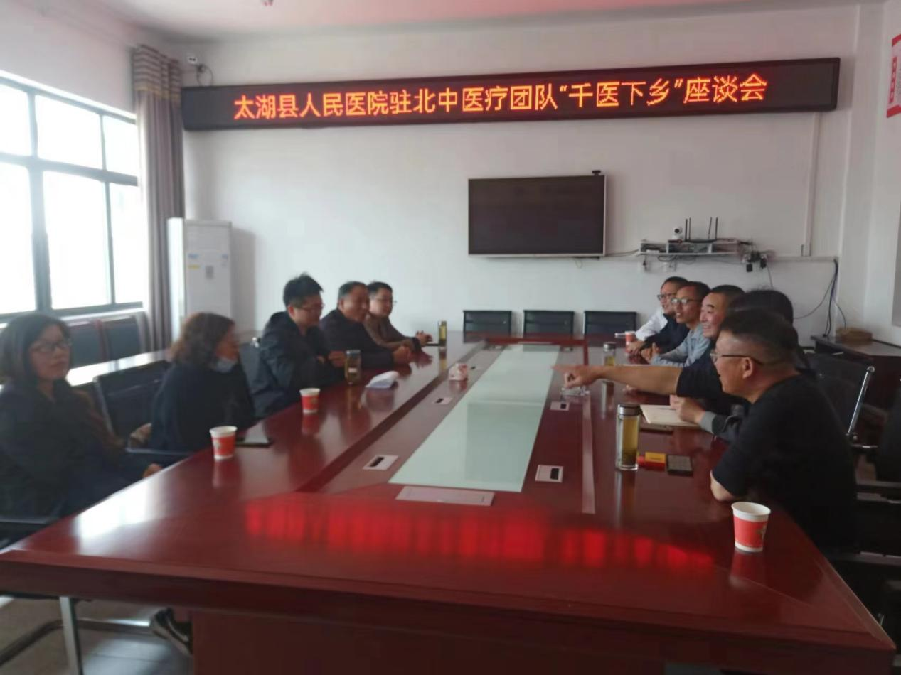 2023年4月11日上午,太湖县人民医院千医下乡专家一行在北中镇卫生院陈小权院长的陪同下来到我村召开座谈会?;嵘?,北中镇卫生院陈小权院长对各位专家进行了一一介绍,接着,专家们向村委会介绍了此行的目的,希望大家积极宣传千医下乡的政策,方便北中镇人民群众就医。