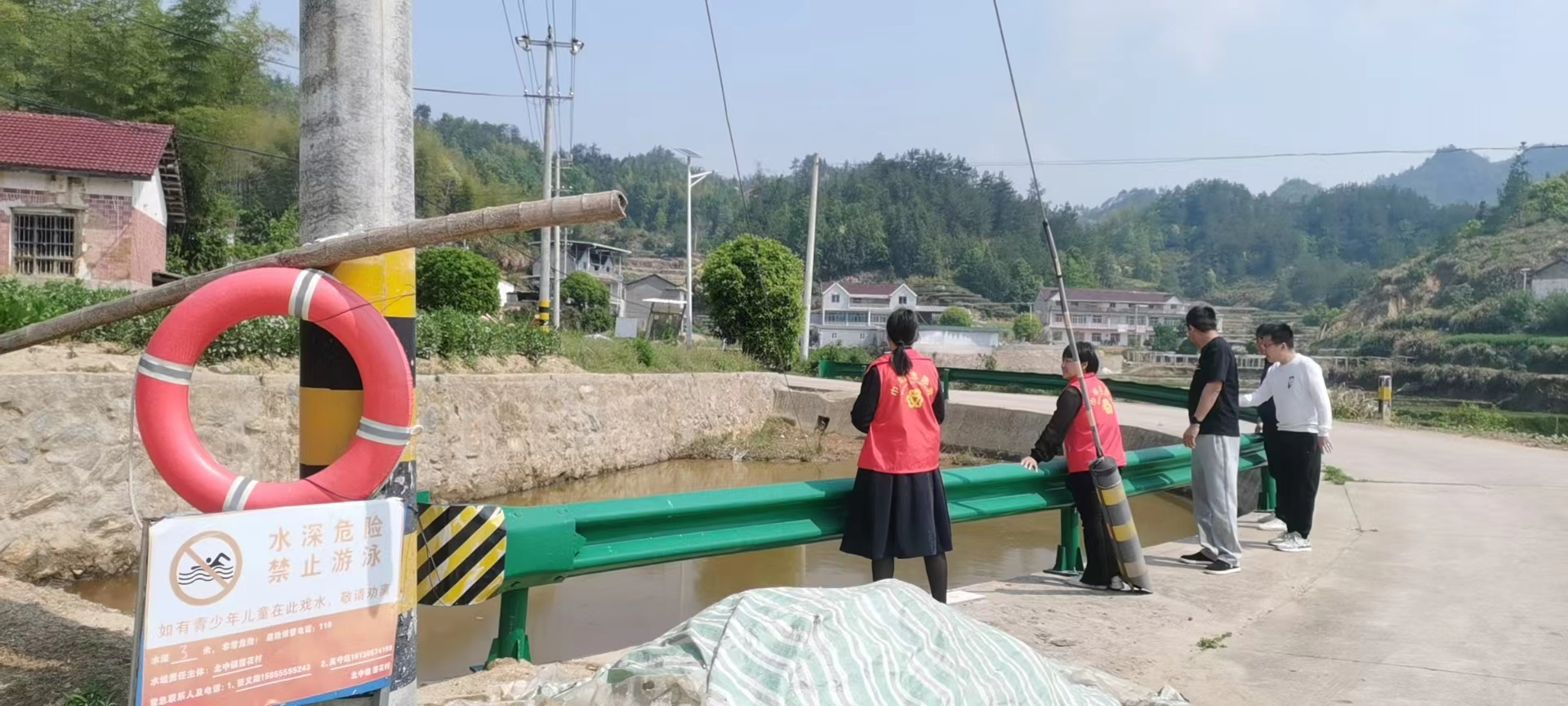 2025年4月27日,严镇长、王主席、工作队一行到莲花村各个水域检查救生设备。