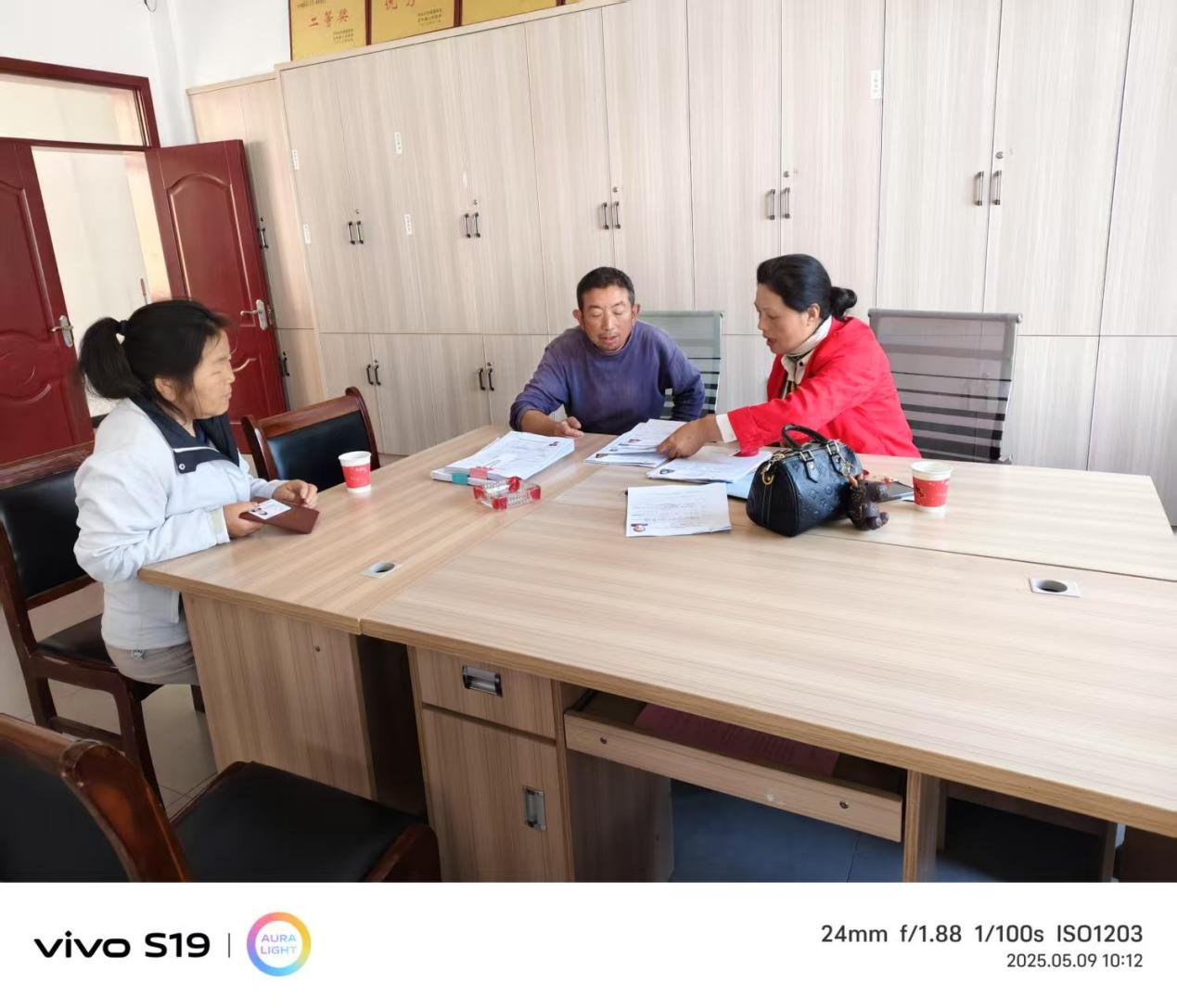2025年5月9日,县卫健委王主任到莲花村复核2025年新增奖扶对象情况等工作。