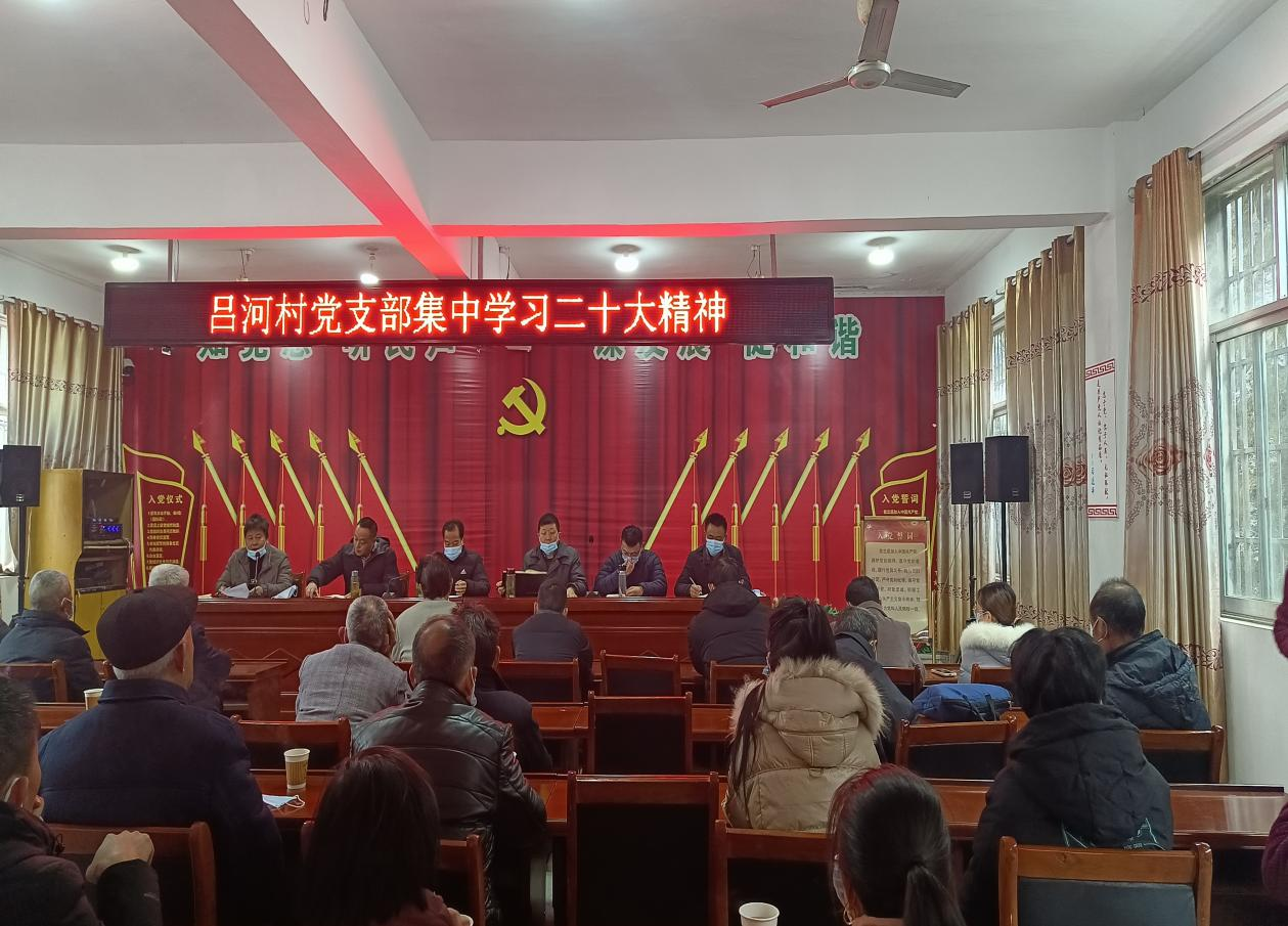 2022年12月8日,吕河村党支部集中学习二十大精神。