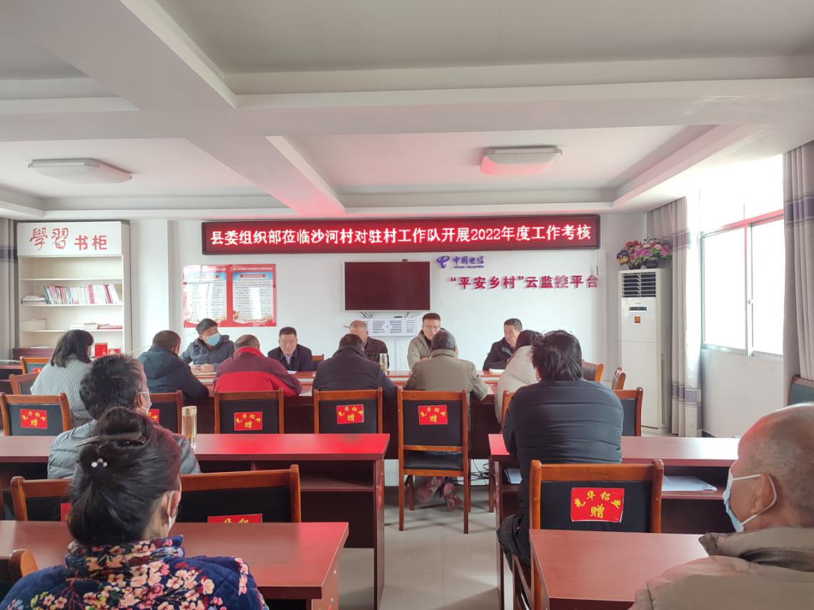 2022年12月15日,县委组织部一行来沙河村对驻村工作队开展2022年度工作考核。