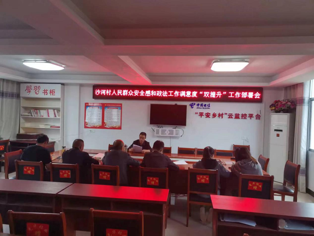 2023年5月17日,沙河村召开人民群众安全感和政法工作满意度“双提升”工作部署会。