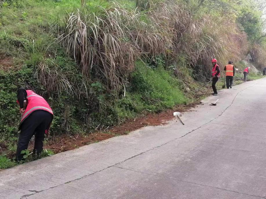 2024年4月7日上午,罗山村“两委”组织生态护林员开展人居环境整治,对刘岭组、黄岭组道路两侧芭茅、杂草进行清除工作。