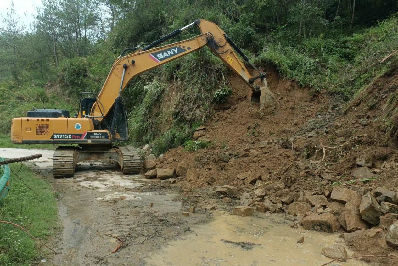 2024年8月1日上午,罗山村“两委”组织志愿者通过清理塌方障碍、修改水路等方式及时排除隐患,调用挖机对塌方地段进行土方填埋和清除道路障碍段来确保群众安全出行。