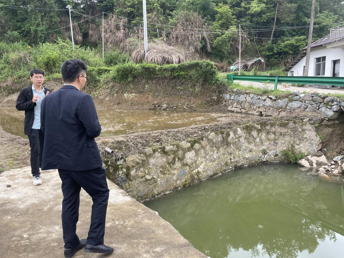 临近汛期,朱部长等人到我村实地查勘水毁情况。