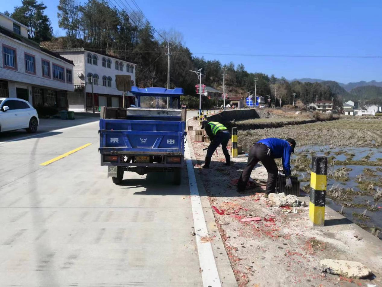 三村村村两委组织环卫工及志愿者开展清扫公路沿线垃圾