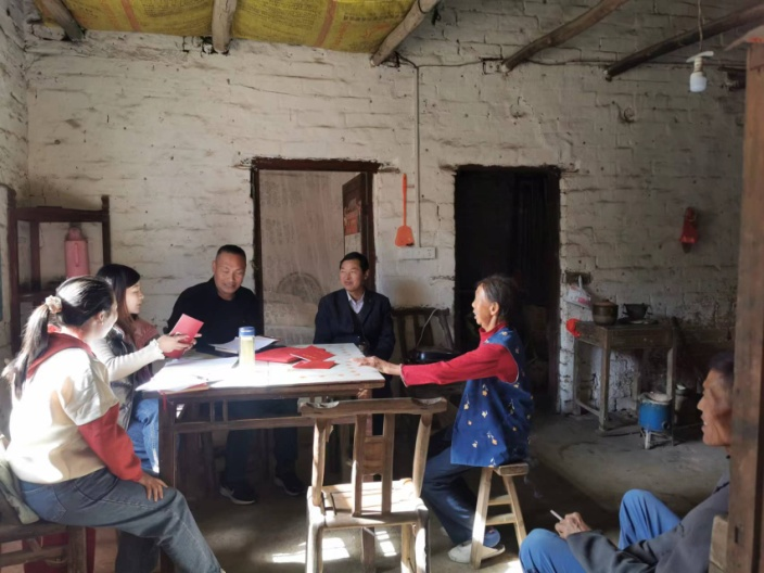 2022年10月19日,驻村工作队同村两委入户帮助脱贫户解决难题。
