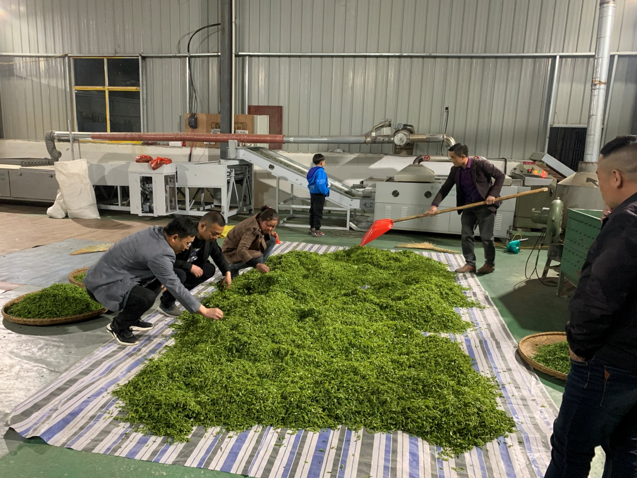 为更有效提高村级集体经济收入,村两委成员每天坚守茗茶加工生产现场参与茗茶生产。
