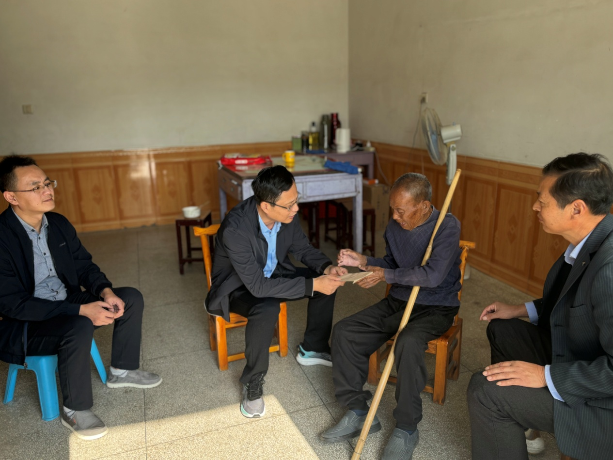 2024年12月3日,驻村工作队及村“两委”入户为行动不便的老党员上门送学。