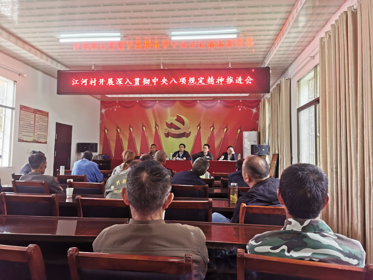 2025年5月6日,江河村驻村工作队同村两委集中开展深入贯彻中央八项规定精神学习教育专题会。