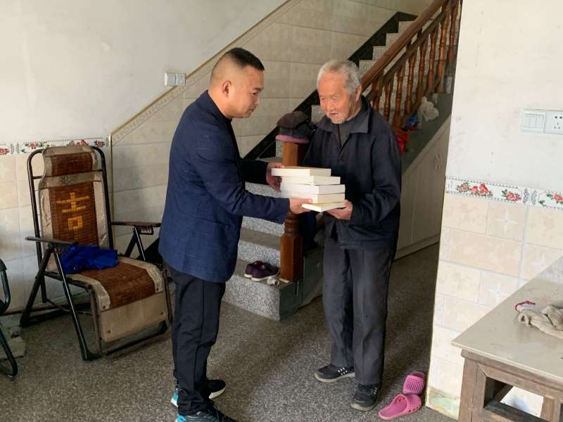 2025年5月17日驻村工作队及两委针对支部行动不便的老党员开展送学上门。