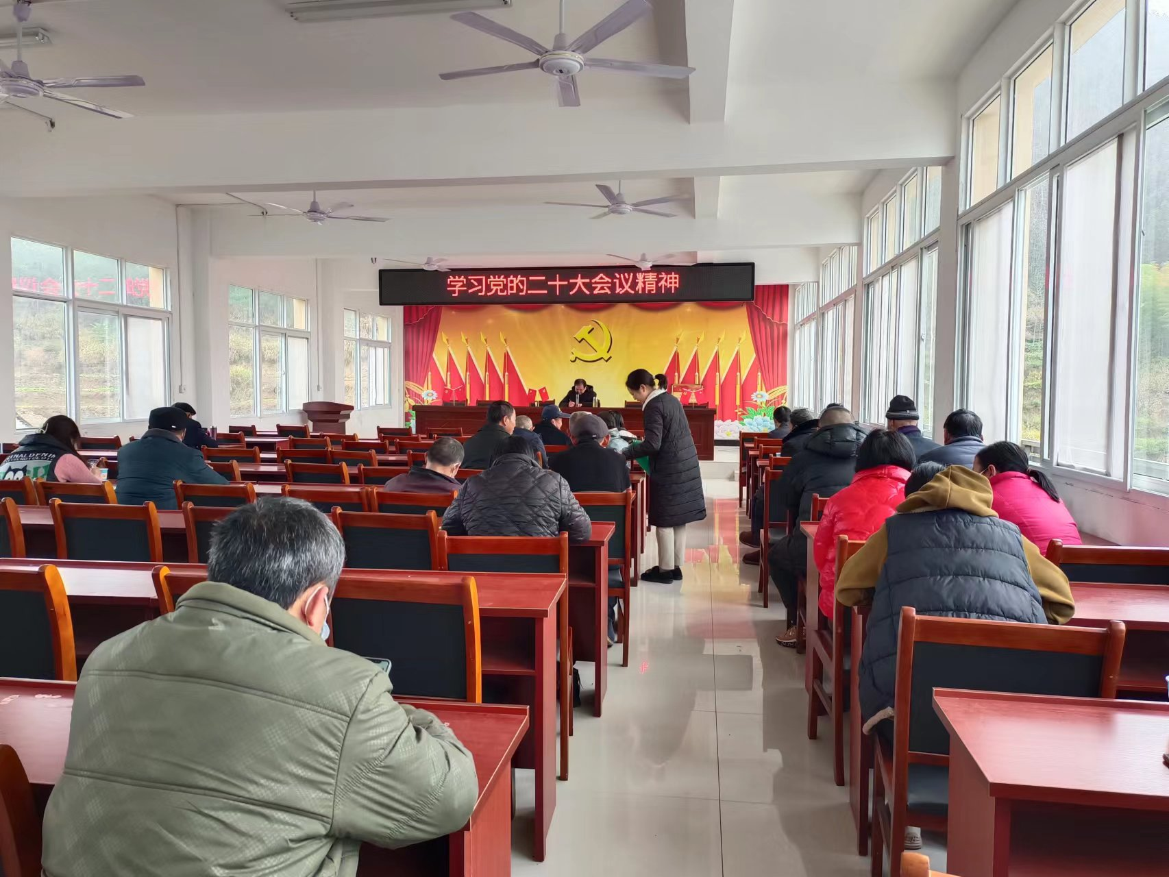 2022年12月9日,浮坵村党支部集中学习二十大精神。