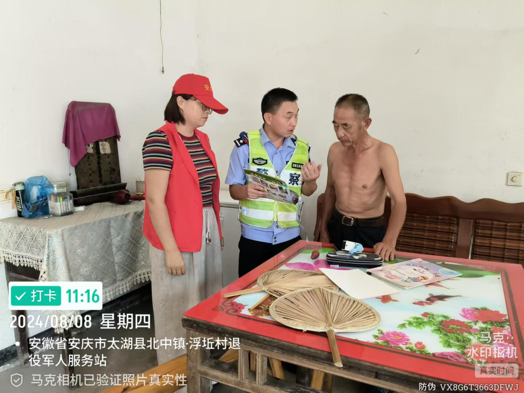 2024年8月8日,弥陀交警队工作人员与浮坵村“两委”成员一起入户宣传交通安全知识,引导村民遵守交通安全法规,并张贴宣传画报和标语。