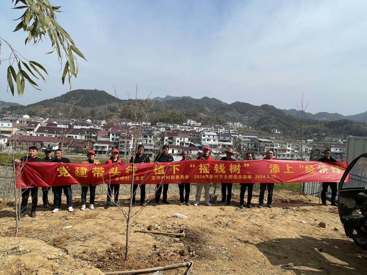 2024年3月12日,宝坪村“两委”、驻村工作队、16个村民小组组长开展 “党建带头行 植下摇钱树 添上经济绿”植树节活动。据统计,本次共有25人参加植树活动,其中党员18名,共植下600余株白果。