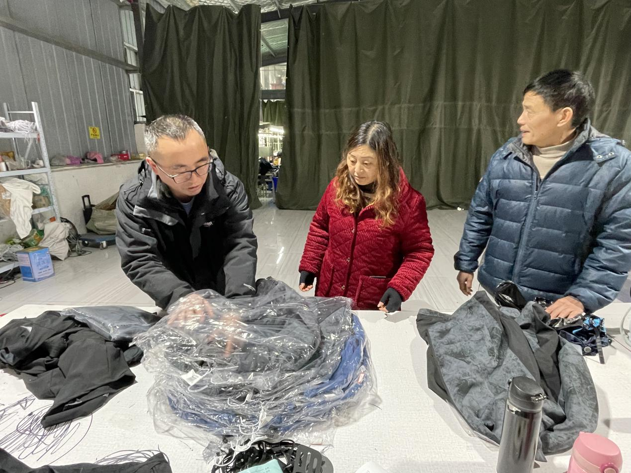 2024年12月5日,宝坪村驻村工作队到乡村振兴车间督促工装生产进度,争取早日交货,消费收入纳入2024年集体经济收入。