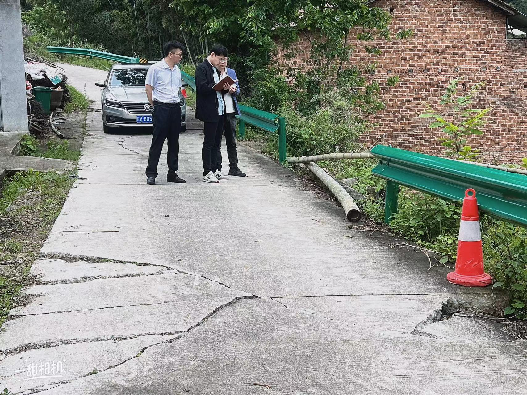 5月10日,镇政府朱部长、占主任一行来望天村查看水毁路段。