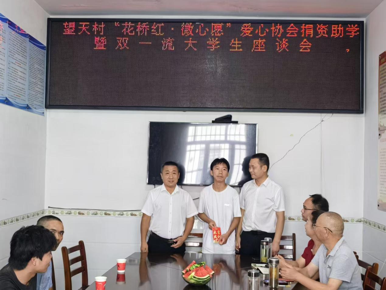 2024年8月2日,北中镇望天村“花桥红 微心愿”爱心协会开展捐资助学暨走访贫困大学生活动,镇政协工作联络组组长、镇关工委常务副主任、村“两委”成员、望天学校老师参加活动。