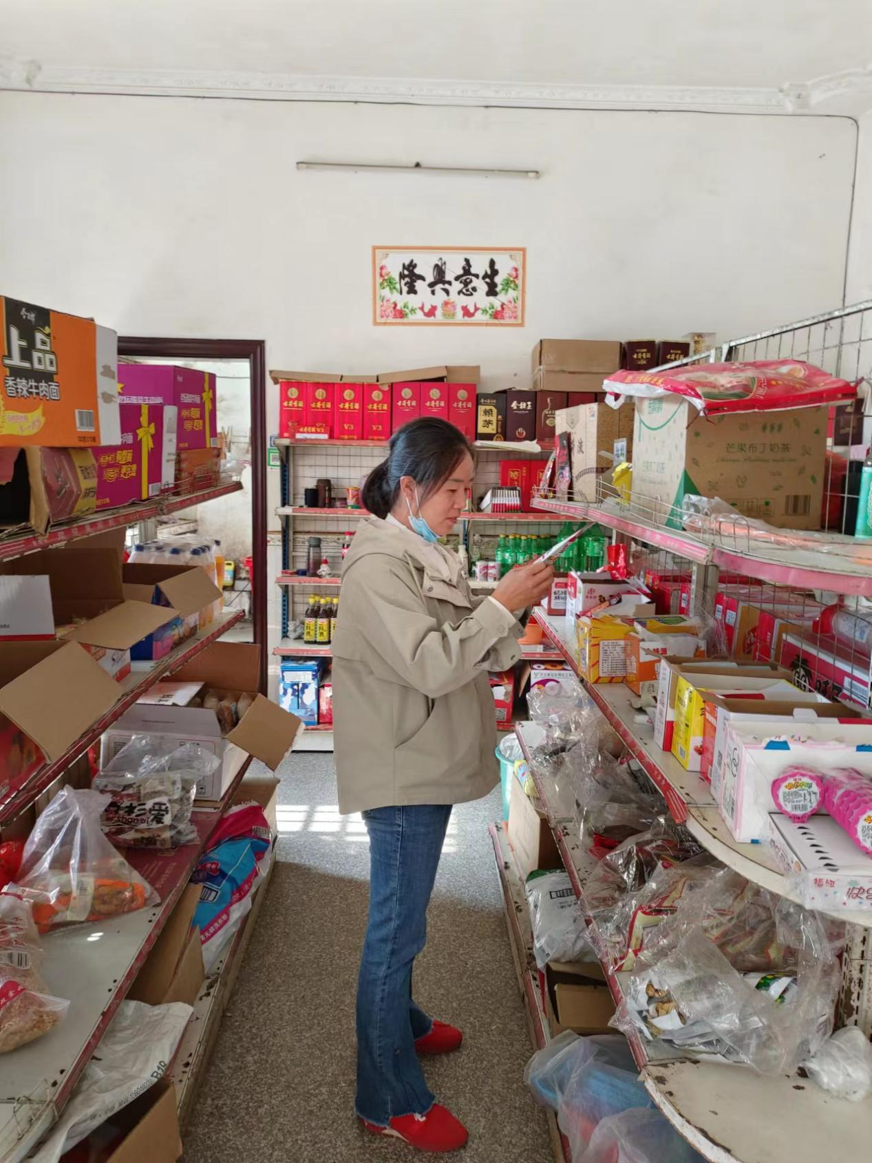 2022年10月23日,玉岭村村干到各组商品小店对所售食品进行安全检查,拒绝售卖过期变质商品。