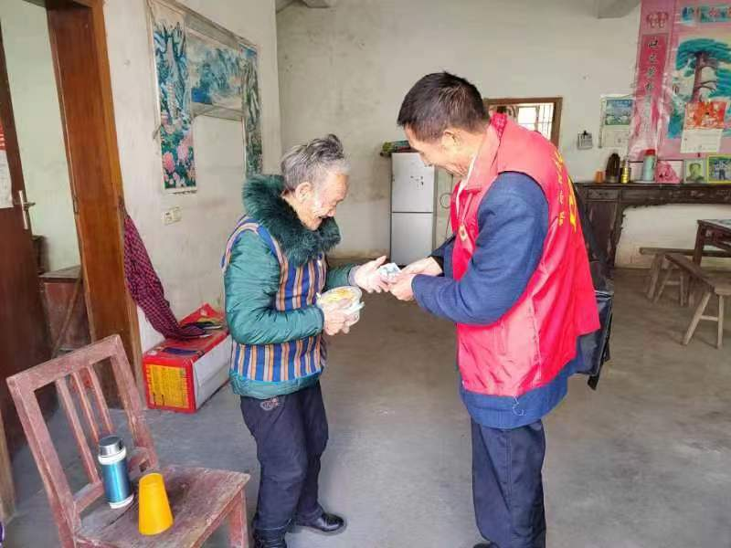 2022年11月8日,明珠村关工委、老党员志愿者给独居老年人送餐,献爱心。
